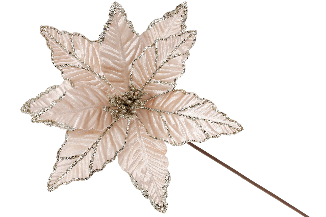 Декоративна квітка Пуансетія 29см, довжина ніжки 50см, колір - шампань