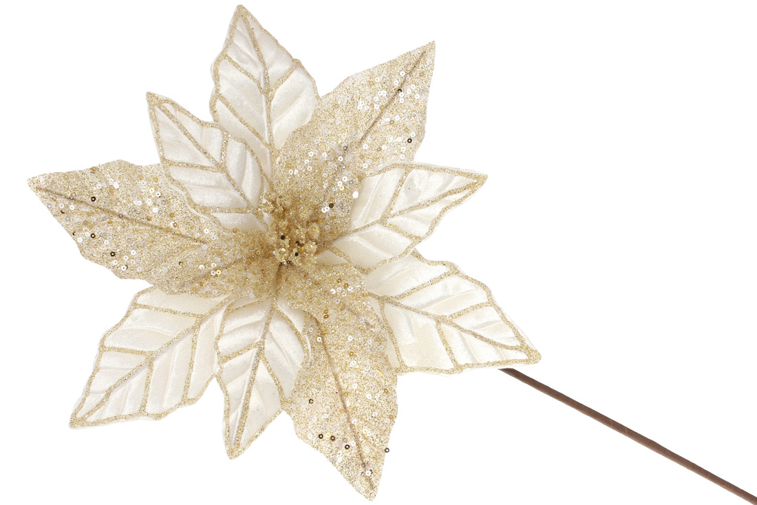 Декоративна квітка Пуансетія 31см, довжина ніжки 50см, колір - світлий крем