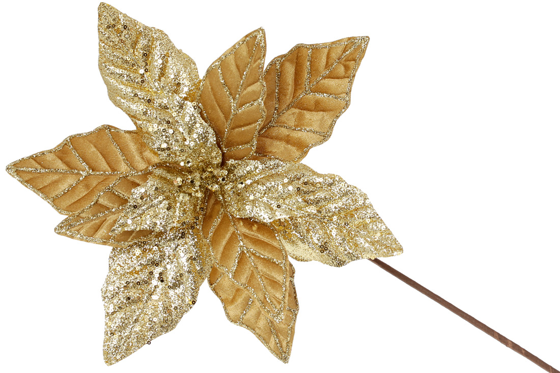 Декоративна квітка Пуансетія 31см, довжина ніжки 50см, колір - золото