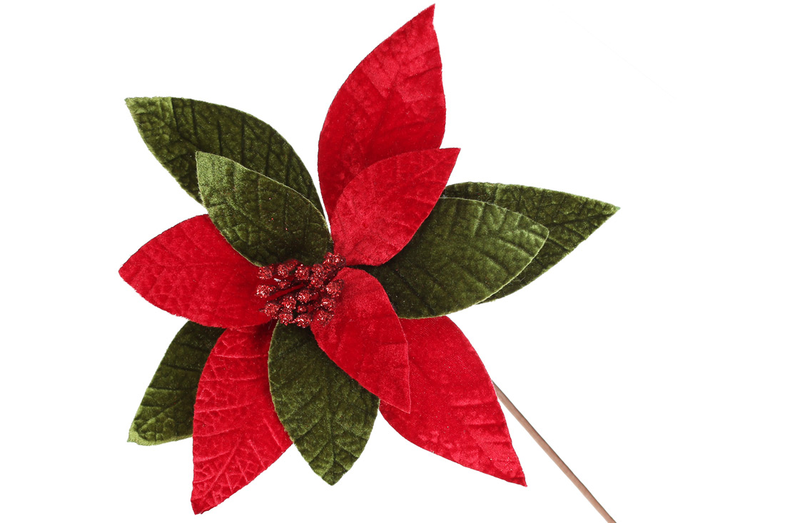 Декоративна квітка Пуансетія 50см, колір - червоний із зеленим