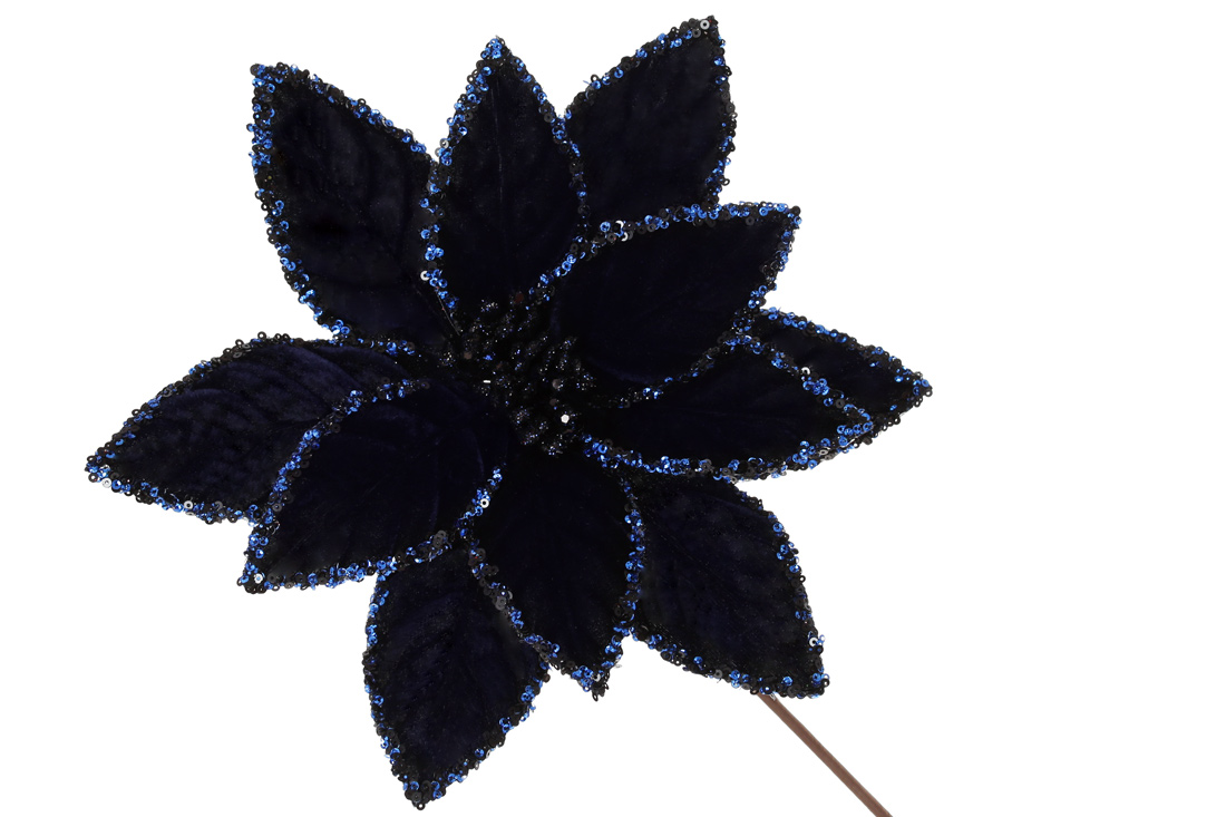 Декоративна квітка Пуансетія з оксамиту 28см, ніжка 50см, колір - північний синій