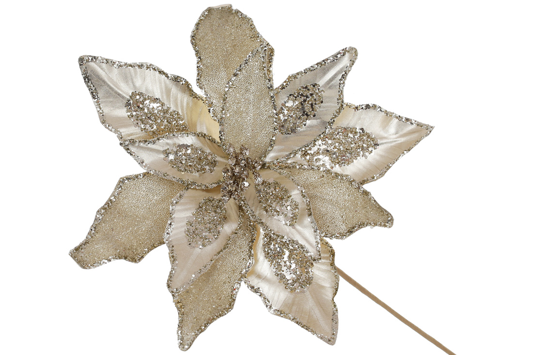Декоративна квітка Пуансетія з гліттером 31см, ніжка 50см, колір - шампань