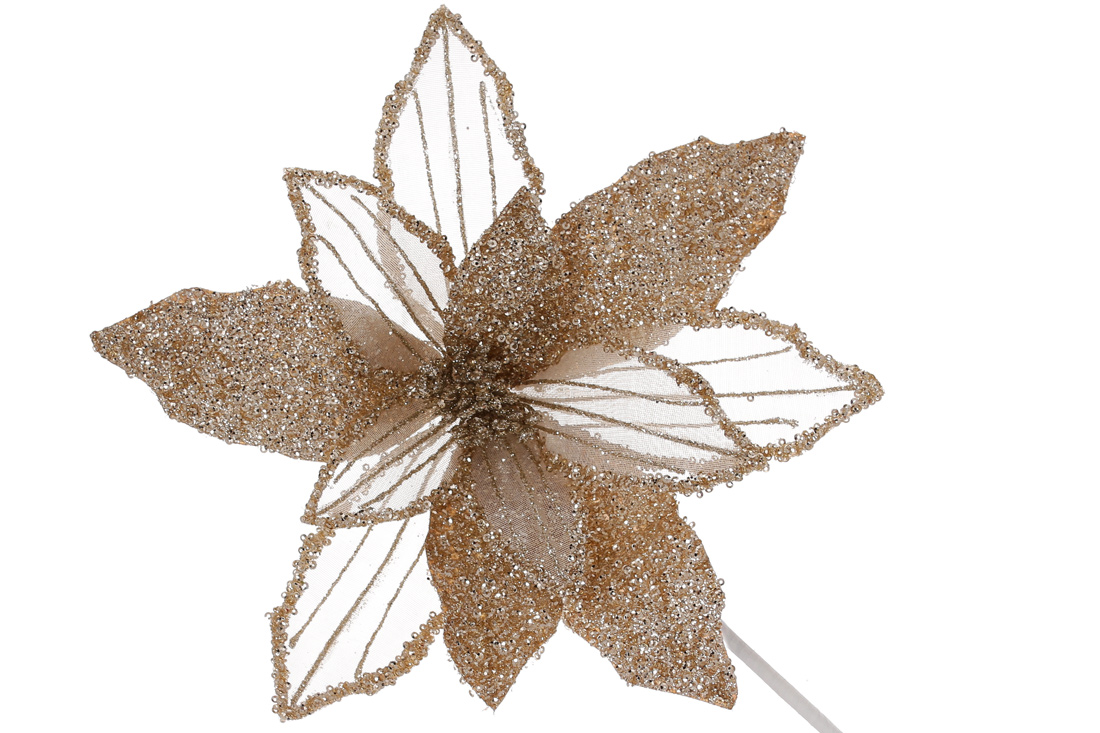 Декоративна квітка Пуансетія з гліттером та бісером 30см, ніжка 50см, колір - шампань