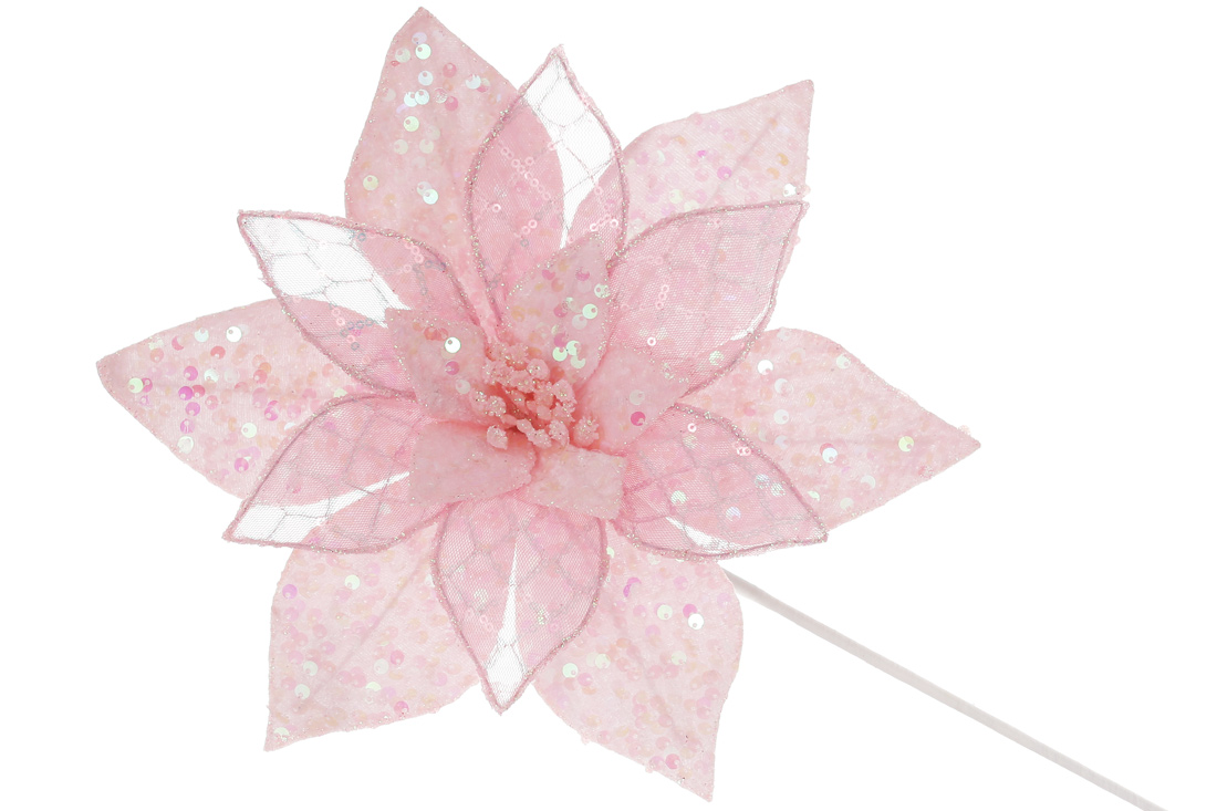 Декоративна квітка Пуансетія з гліттером та паєтками 33см, ніжка 50см, колір - рожевий