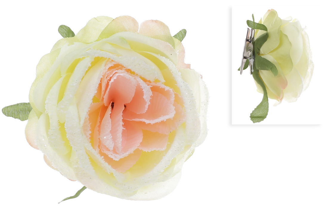 Декоративна квітка Троянда на кліпсі, кремова в снігу.