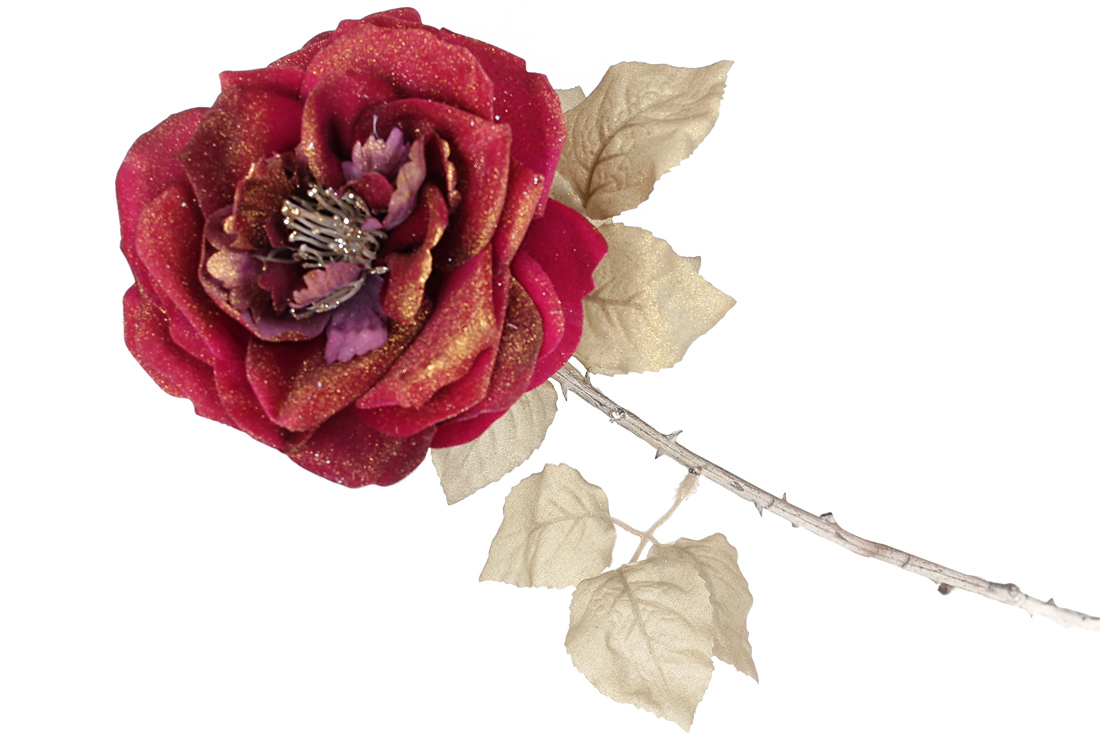 Декоративна квітка Троянди, 67см, колір - бургунді із золотим гліттером
