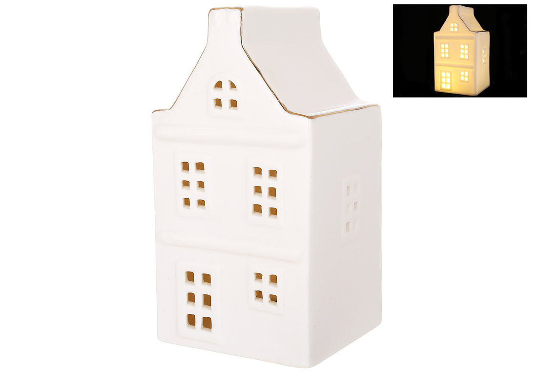 Декоративний Будинок з LED підсвічуванням, 16.5см, колір - білий