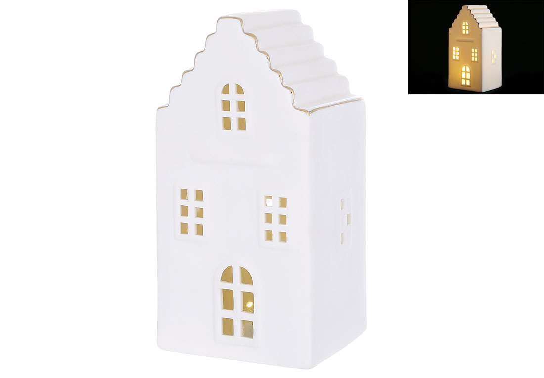 Декоративний Будинок з LED підсвічуванням, 9.5*8.5*18.5см, колір - білий матовий