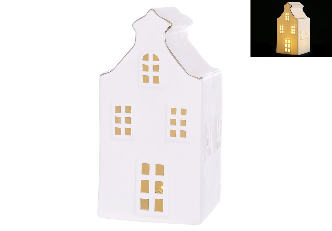 Декоративний Будинок з LED підсвічуванням, 9*8*17.5см, колір - білий матовий