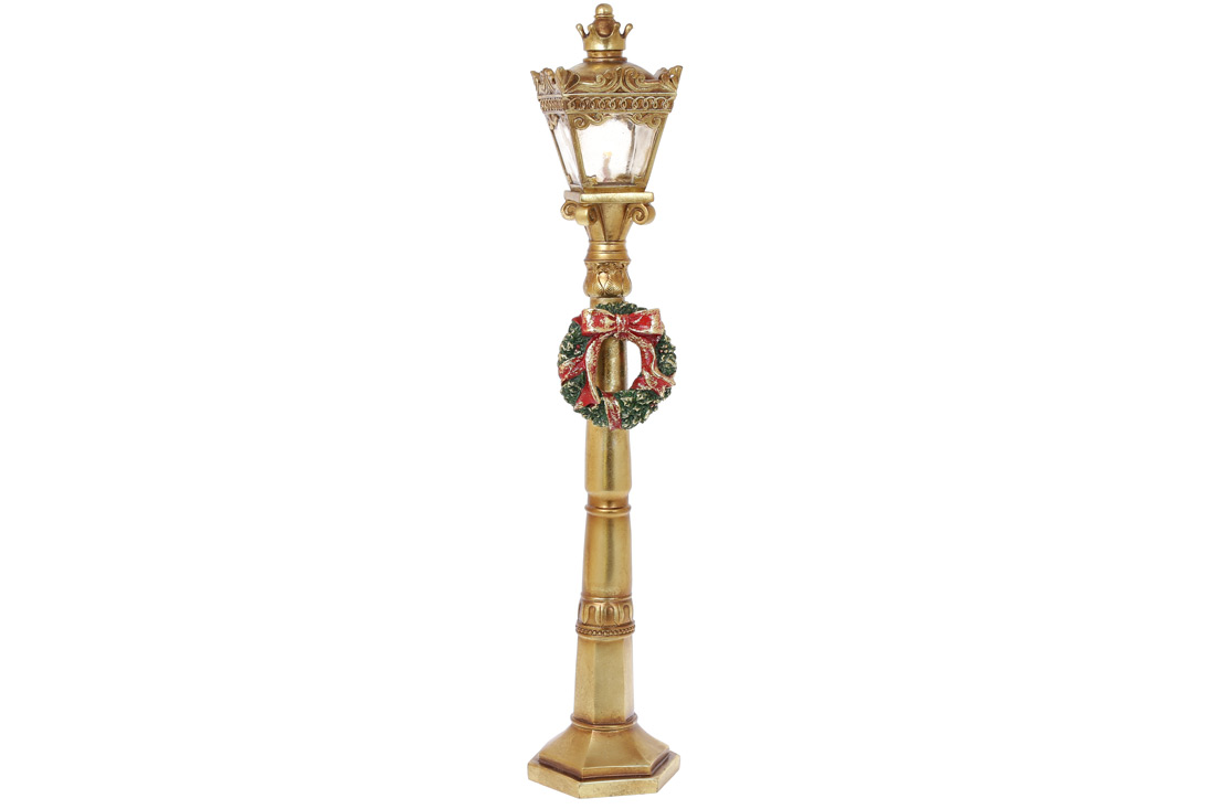 Декоративний Ліхтар з Різдвяним вінком з LED підсвічуванням на батарейках (2хААА), 60см, колір - золото