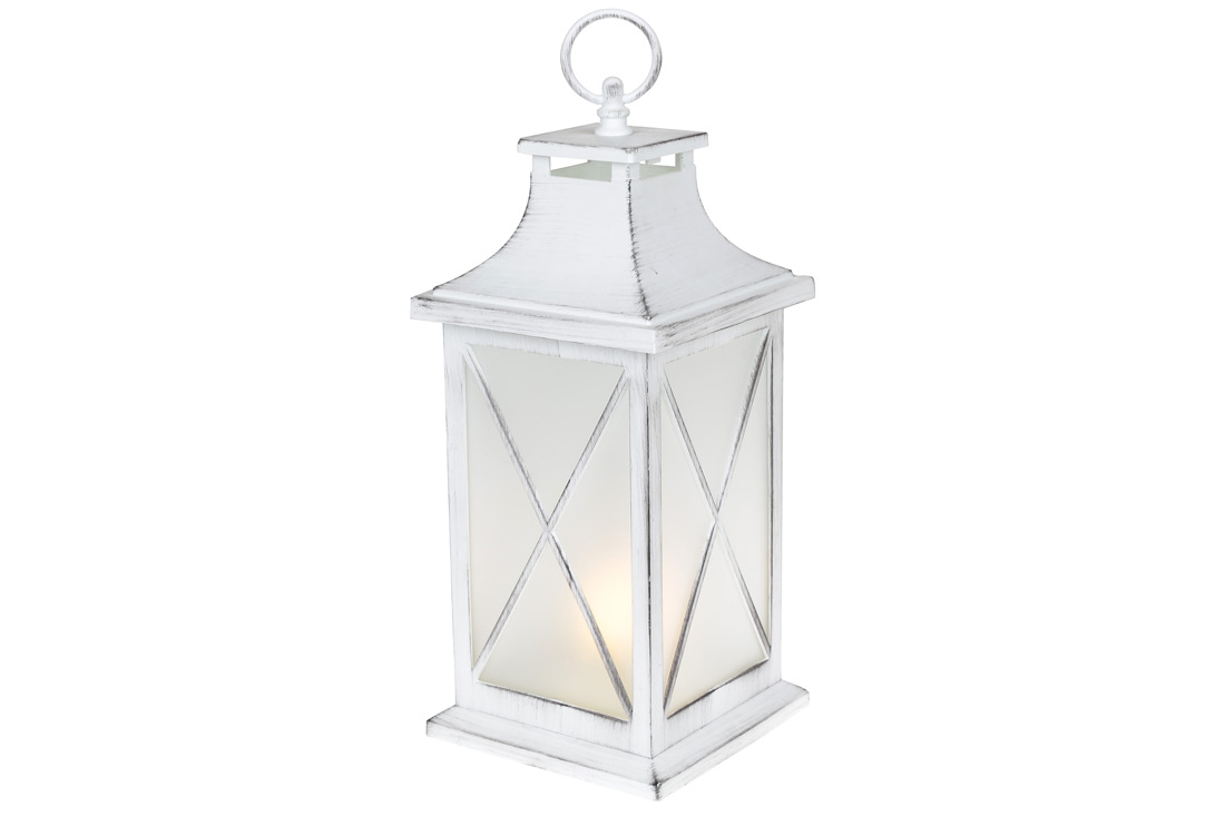Декоративний ліхтар зі свічкою з LED підсвічуванням (тепле біле світло) на батарейках (3хААА - не входять до комплекту), 13.5*34.5см, колір - білий з