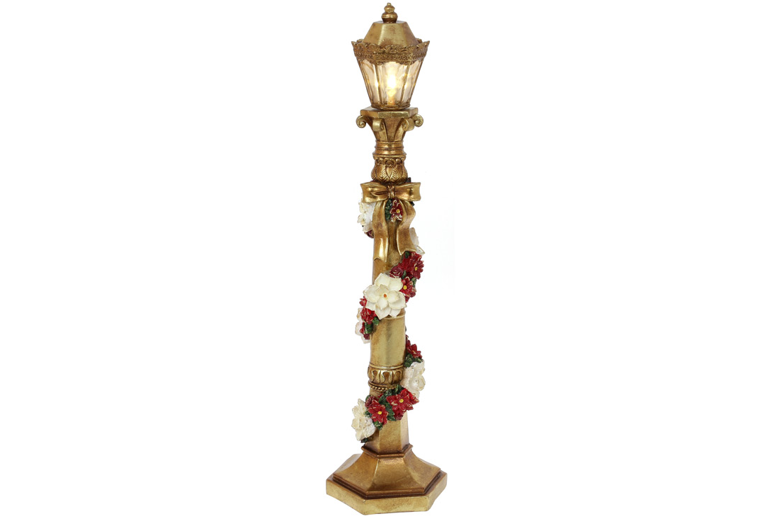 Декоративний Ліхтар у квітах з LED підсвічуванням на батарейках (2хААА), 48см, колір - золото