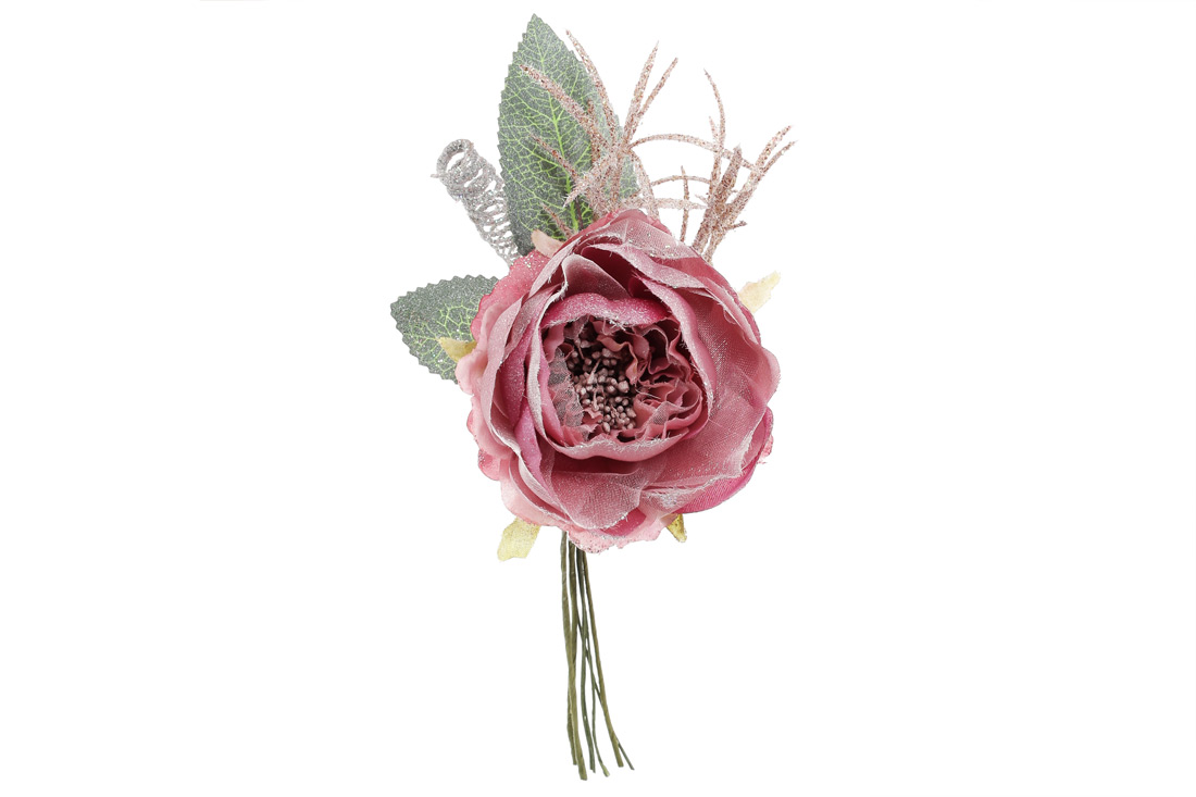 Декоративна штучна квітка Троянда із зимовим декором, 11 см, колір - зістарений рожевий