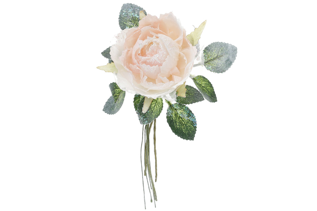 Декоративна штучна квітка Троянда 17см з гліттером, колір - кремовий градієнт
