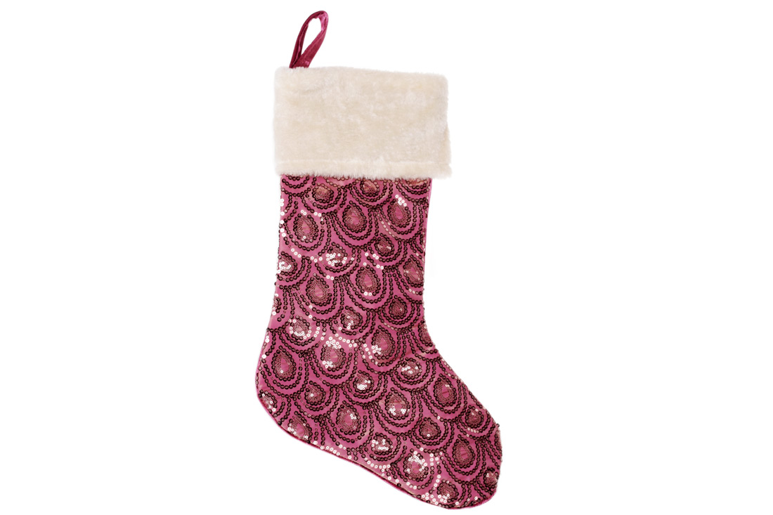 Декоративний новорічний Чобіток для подарунків 53см з паєтками, колір - рожевий