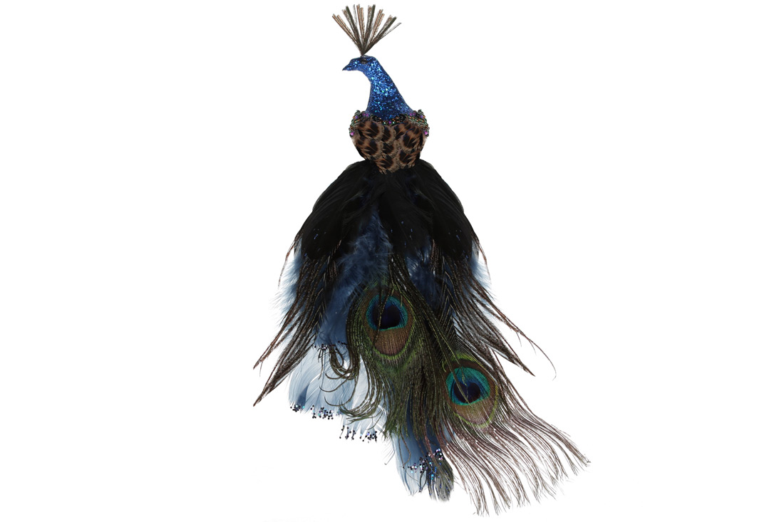 Декоративний Павич на кліпсі 25см, колір - насичений синій