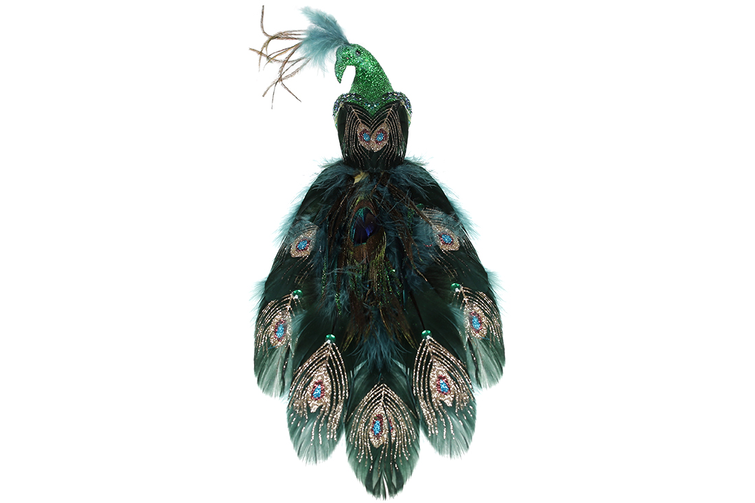Декоративний Павич на кліпсі 32см, колір - смарагдовий зелений