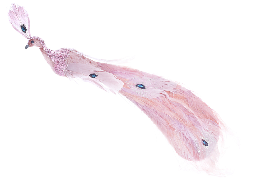 Декоративний Павич на кліпсі 48см, колір - рожевий