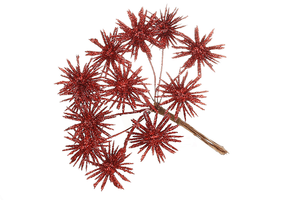 Декоративний пучок ( 6шт ) Колючка в червоному гліттері, 13см