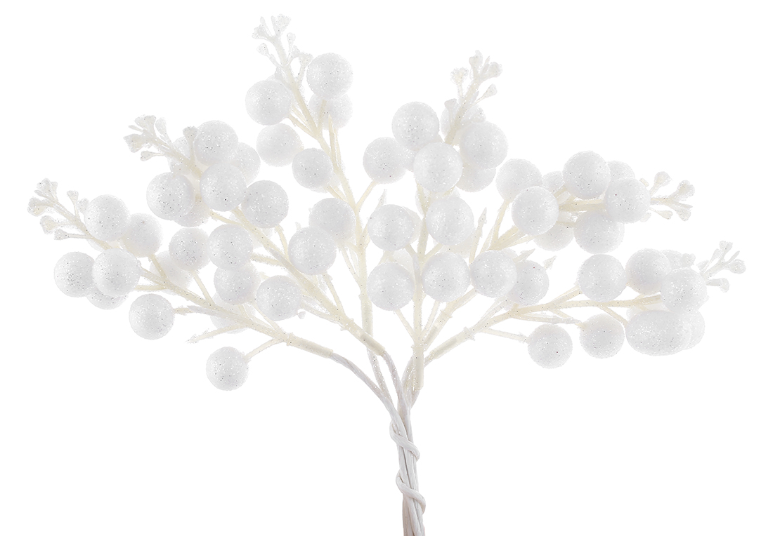 Декоративний пучок ягід, 19см, колір - білий