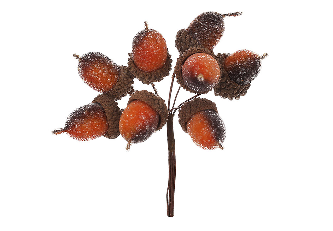 Декоративний пучок жолудів із цукровим напиленням 8шт, 12см