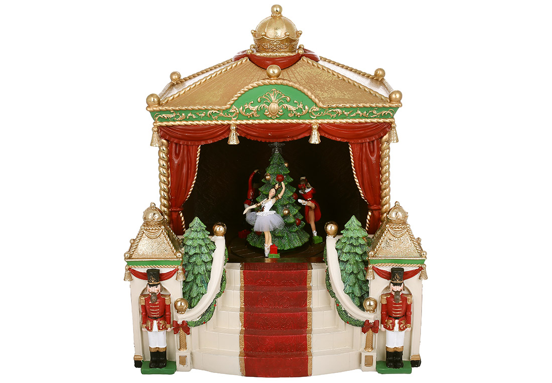 Декоративний Театр з LED підсвічуванням, ялинкою, що обертається, і балериною ( музика - Лускунчик ), 34*30*40см