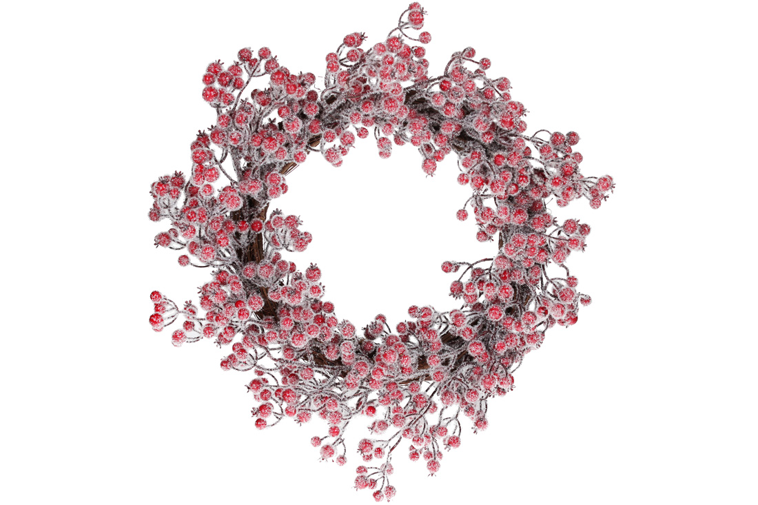 Декоративний вінок із червоних ягід у снігу, 55см.