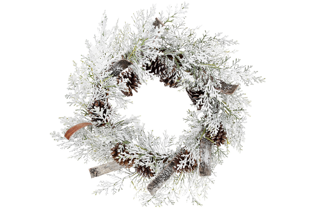 Декоративний вінок із засніженої хвої та шишок, 50см