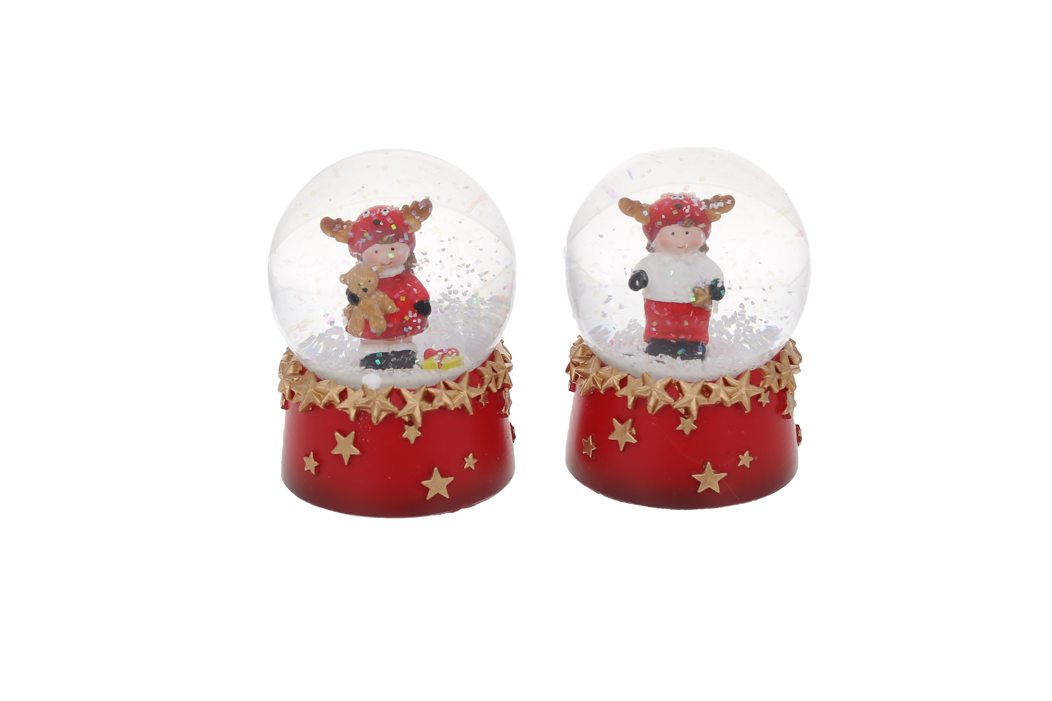 Декоративна водяна куля Дітки в оленячих шапках 8см, 2 дизайни - хлопчик та дівчинка