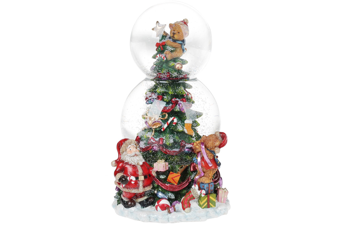 Декоративна водяна куля Різдвяна ялинкова на заводному механізмі з музикою, 20.5см