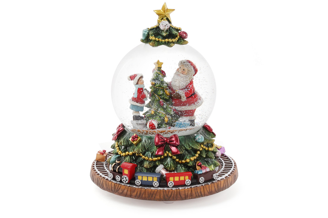 Декоративна водяна куля з поїздом 18см, що рухається, з музикою "Happy New Year" на заводному механізмі