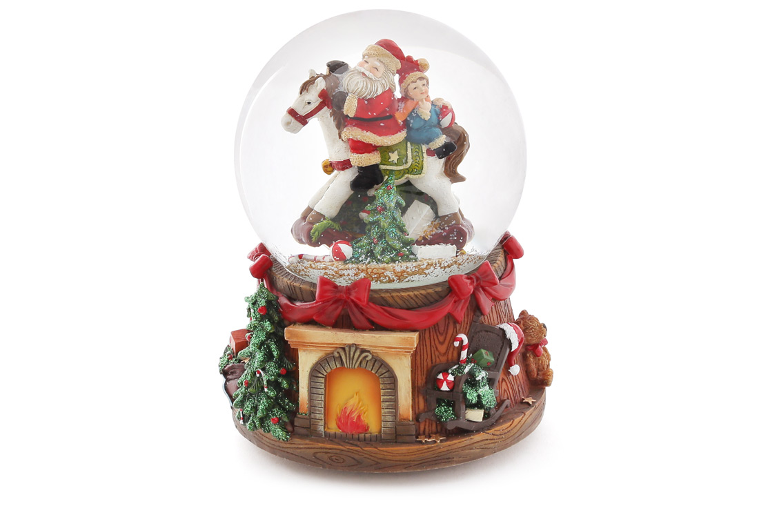 Декоративна водяна куля Санта на коні 15.5см з музикою "У лісі народилася ялинка" на заводному механізмі