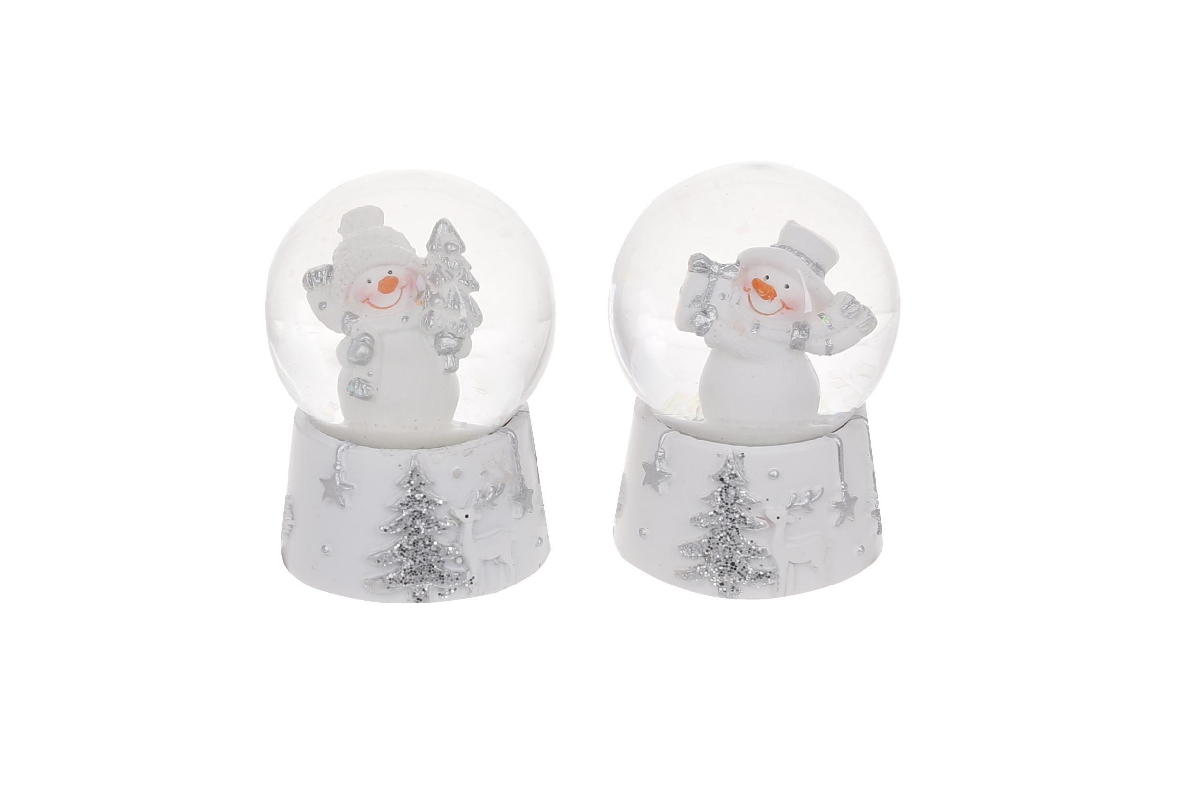 Декоративна водяна куля Сніговик 5.2см, 2 дизайни, колір - білий зі сріблом.