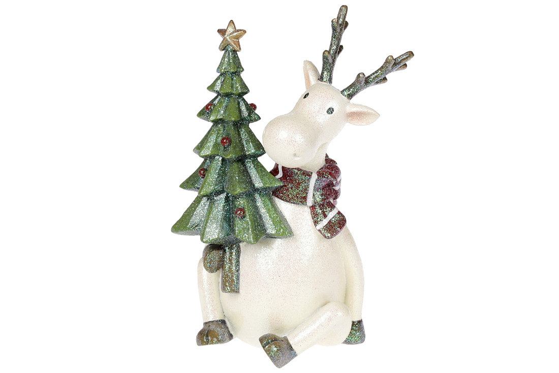 Декоративна статуетка Лось з ялинкою, 20.6см, колір - білий