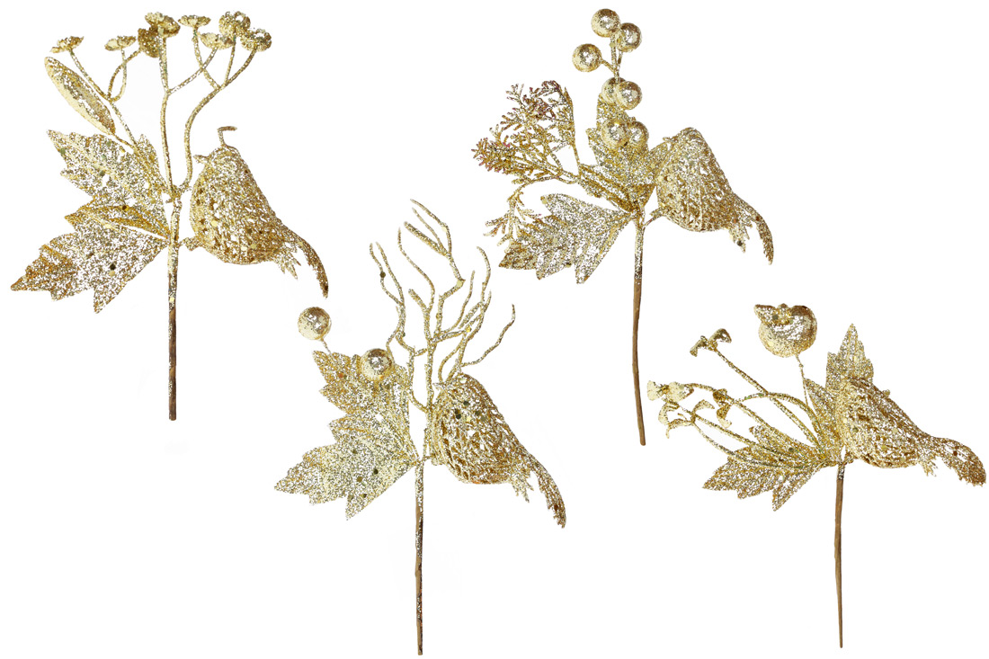 Декоротивний букетик, 20см, колір - золото гліттер, 4 дизайни