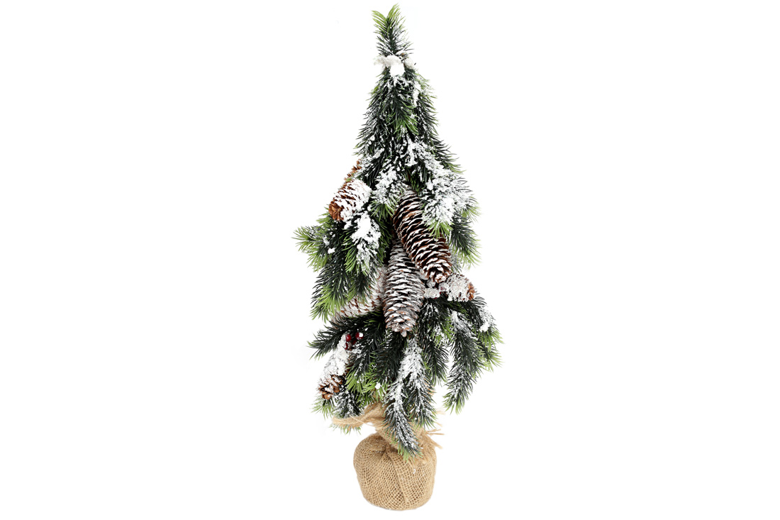 Ялинка 50см з декором із ягід та шишок у джутовому мішечку