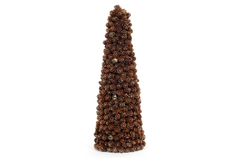 Ялинка декоративна з натуральних шишок з дзвіночками у золотій присипці