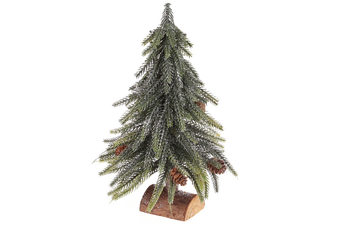 Ялинка декоративна із срібним гліттером на дерев'яній підставці, 27см