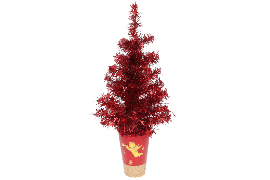 Ялинка декоративна в горщику, колір - червоний