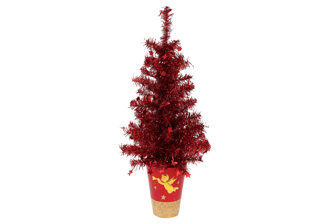 Ялинка декоративна в горщику, колір - червоний