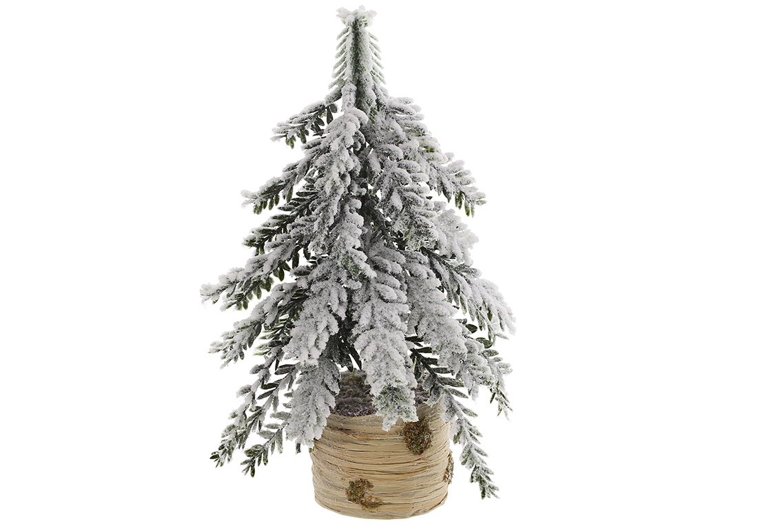 Ялинка декоративна засніжена на дерев'яному пеньку,12X12X21 см