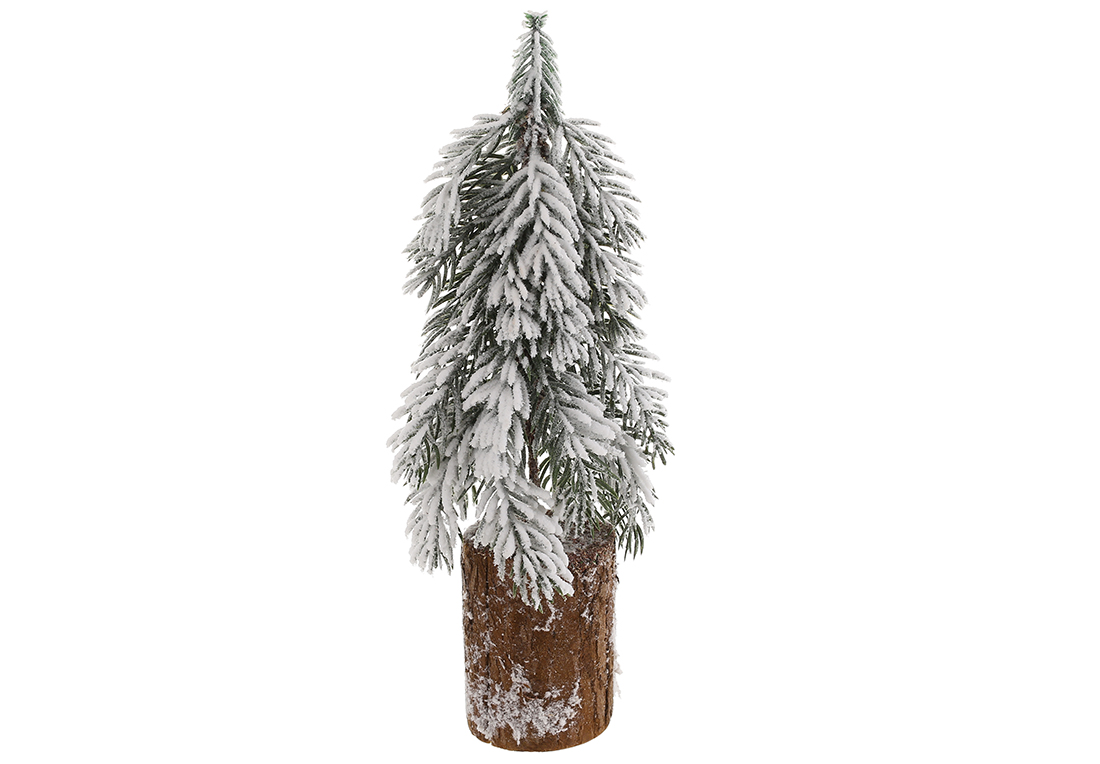 Ялинка декоративна засніжена на дерев'яному пеньку,15X15X32 см