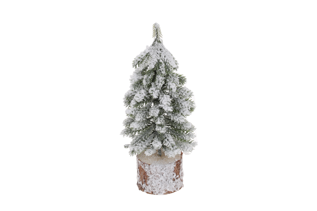 Ялинка декоративна засніжена на дерев'яному пеньку, 8*8*19 см