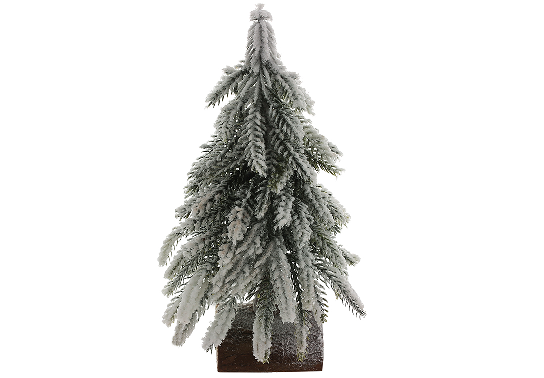 Ялинка декоративна засніжена на дерев'яній підставці, 19см