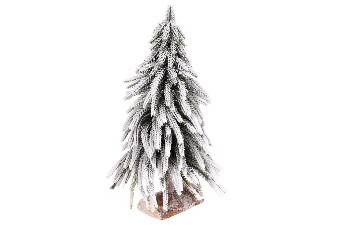 Ялинка декоративна засніжена на дерев'яній підставці, 34см