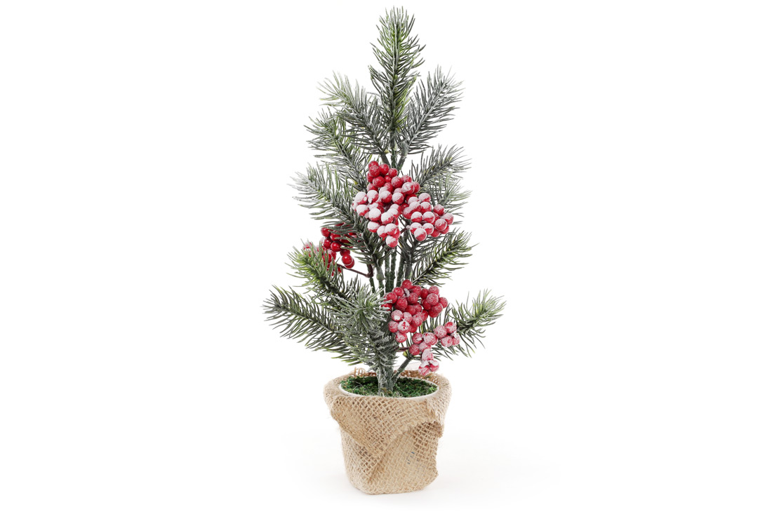 Ялинка декоративна засніжена з ягодами та джутовою основою 23см