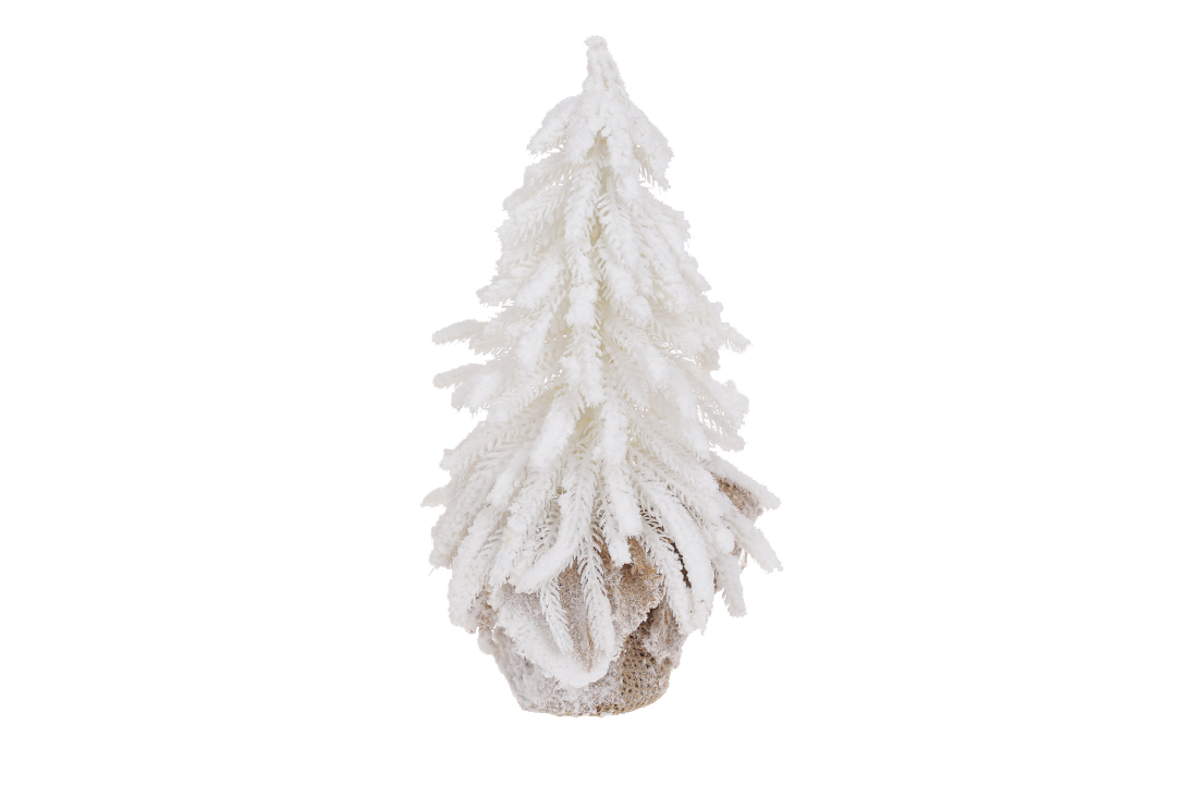 Ялинка декоративна засніжена в джутовому мішечку, 16*16*27 см, колір білий