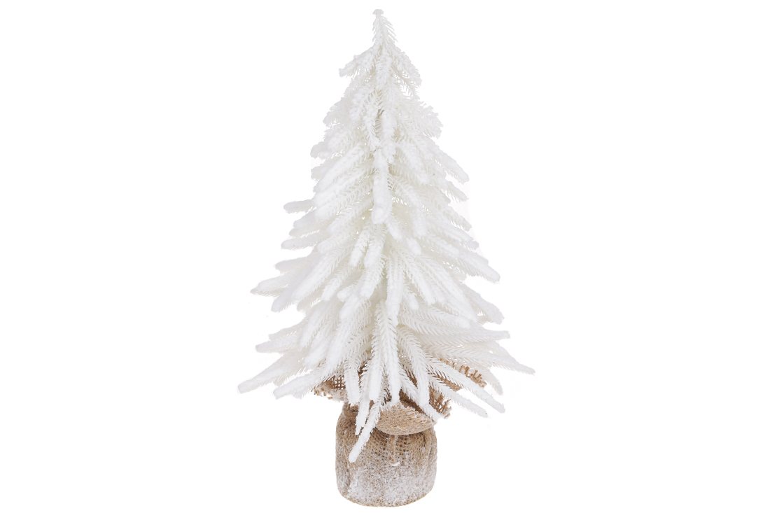 Ялинка декоративна засніжена в джутовому мішечку, 20*20*35 см, колір білий