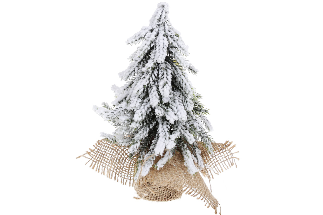 Ялинка декоративна засніжена в джутовому мішечку, 20см