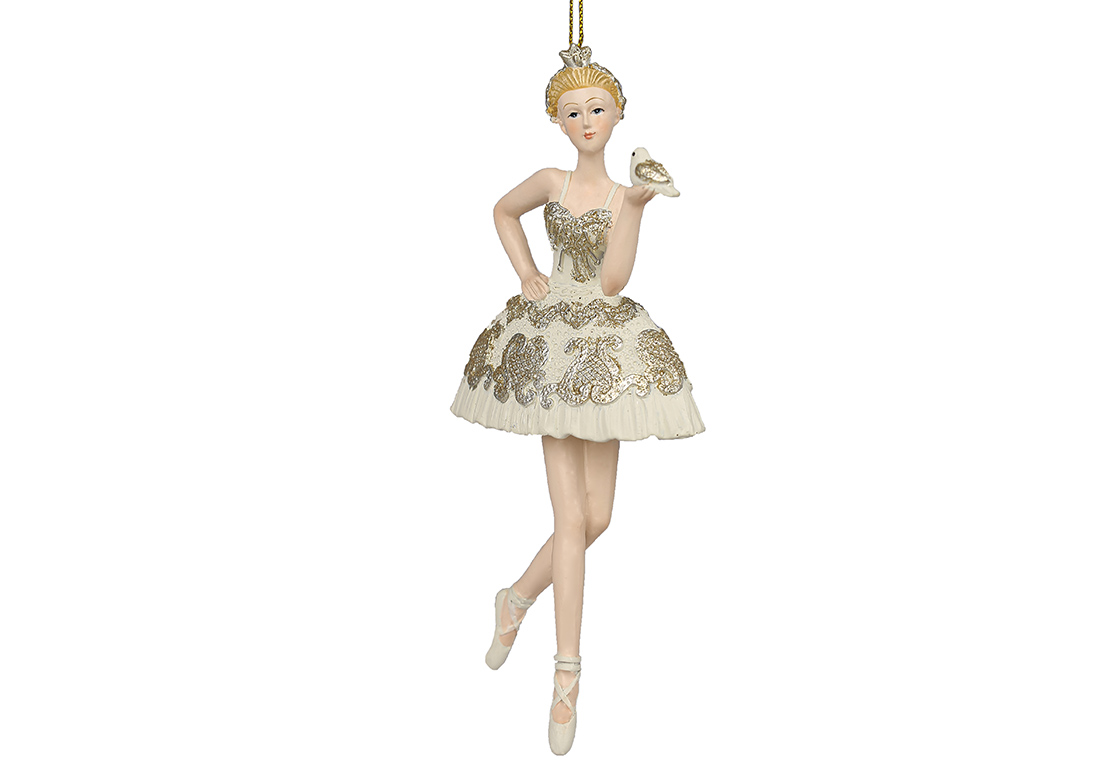 Ялинкова іграшка Балерина з пташкою 8х15см, колір - кремова шампань